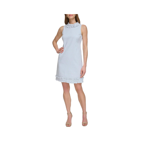 Kadın rahat yaz Shift elbise diz boyu nefes moda elbiseler ön şerit kolsuz tasarım düz boyalı